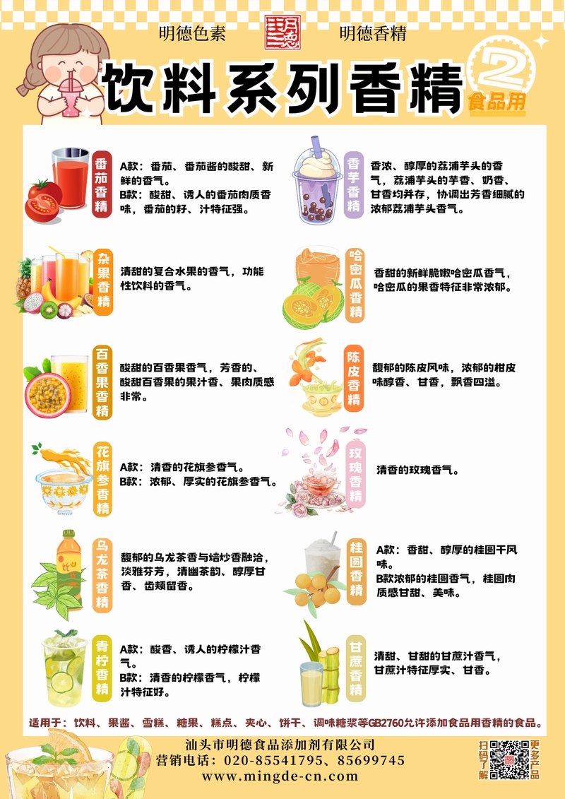 如需獲取不同版本風(fēng)味樣品或配方方案,歡迎聯(lián)系明德團隊。我們致力于為食品工廠提供真實、安全、高性價比的香精解決方案。