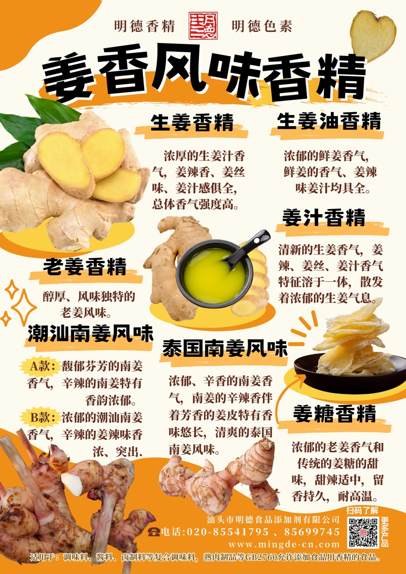 明德姜香風味香精 姜之本味 層次盡顯汕頭市明德食品添加劑有限公司推出的姜香風味香精系列,覆蓋生姜、姜汁、生姜油、老姜、潮汕南姜、泰國南姜等多種調(diào)性。產(chǎn)品風味真實,留香穩(wěn)定,適用于醬料、腌制料、調(diào)理食品、肉制品、風味飲品、糖果、烘焙及外撒粉等B端應用,幫助工廠穩(wěn)定呈現(xiàn)鮮明的姜辣香與去腥提鮮效果。
